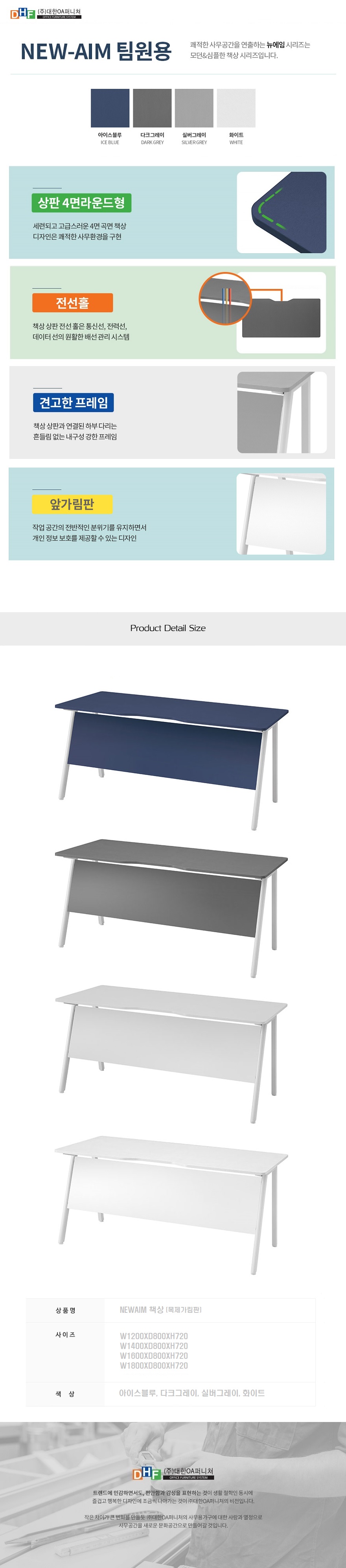 - home > 책상 > 일자형 책상 > [DHF] NEWAIM 목제가림판책상/ 국산책상/ 일자책상/ 라운드책상/ 직원/ 팀원/ 전선홀/ 아이스블루,다크그레이,실버그레이,화이트